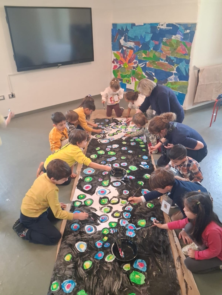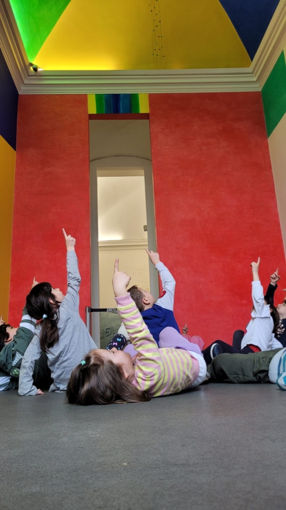 Un pullman a due piani è carico dei bambini dell’ultimo anno delle scuole dell’infanzia Rita Levi-Montalcini e Eleonora D’Arborea che oggi hanno condiviso l’uscita didattica al Castello di Rivoli. Il pullman dondola disegnando traiettorie che ci riportano a scuola. Anche Lucio Fontana realizzava traiettorie luminose, le abbiamo seguite ed abitate perché l’arte oggi si è fatta spazio di bellezza, gioia e condivisione.